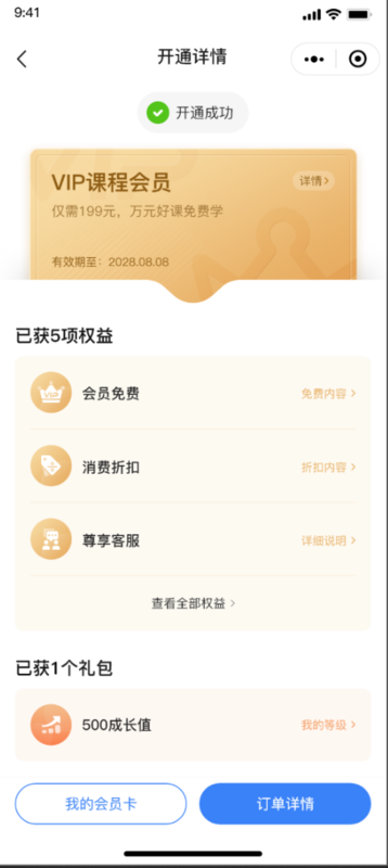 3.会员卡开通成功页面: