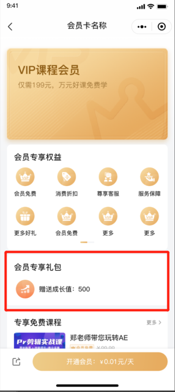 在会员卡中,新增“会员礼包”功能设置,支持设置赠送成长值。