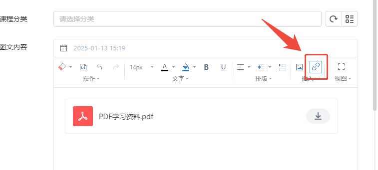 在富文本中插入链接,支持在小程序中点击访问(前提是已配置业务域名)