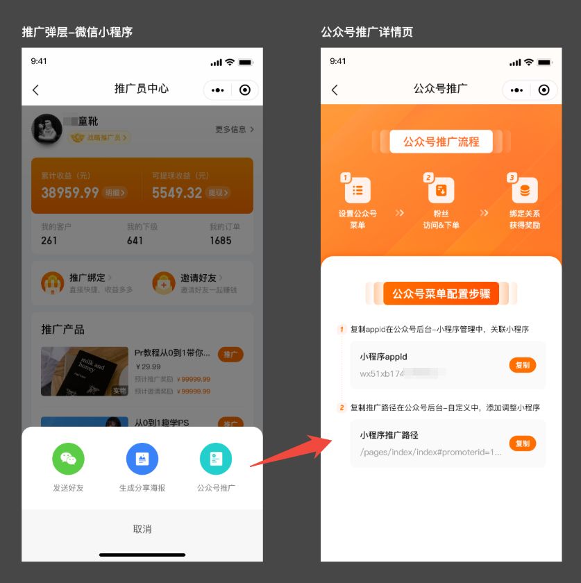 1、支持公众号推广(有公众号粉丝或公众号代理合作场景)