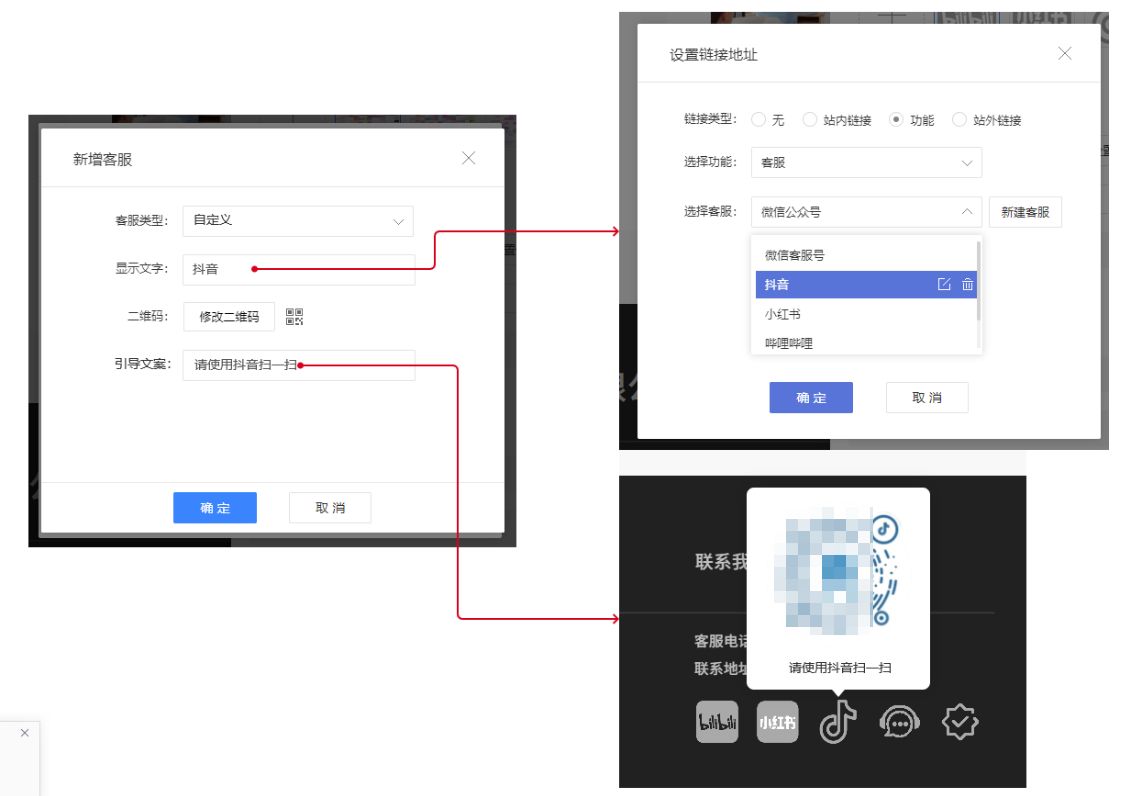 支持自定义客服文案及内容,扩展客服功能场景,如抖音、小红书等均适用