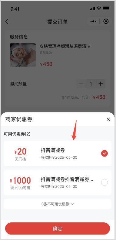 用户在抖音小程序进行先付后约或直接预约服务时,可使用抖音优惠。比如在预订美容服务、餐饮座位等场景,能享受抖音平台提供的价格减免