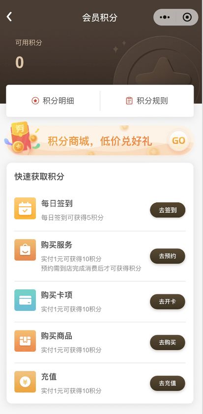 餐饮店:签到积分可兑优惠券(100 积分兑 10 元券),吸引顾客到店就餐