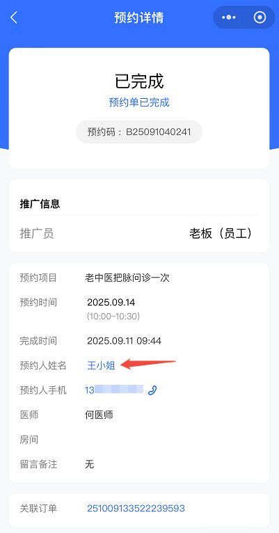 美业门店员工在手机端处理 “面部护理” 预约时,点击预约人姓名,直接跳转至该会员详情页,查看其消费记录、积分余额及会员等级;餐饮店员工处理宴席预约,可快速查看预约人会员权益与历史订单。